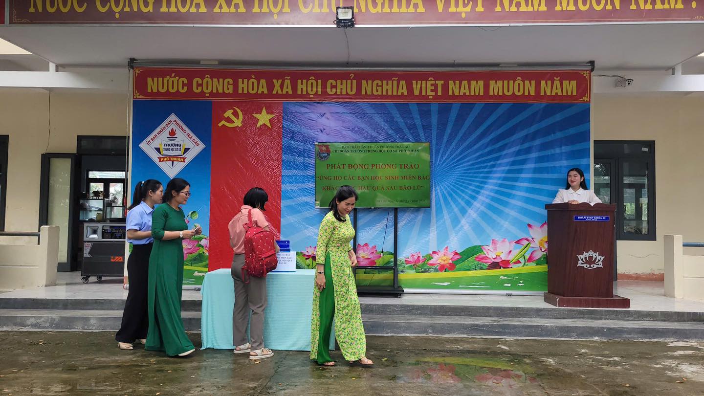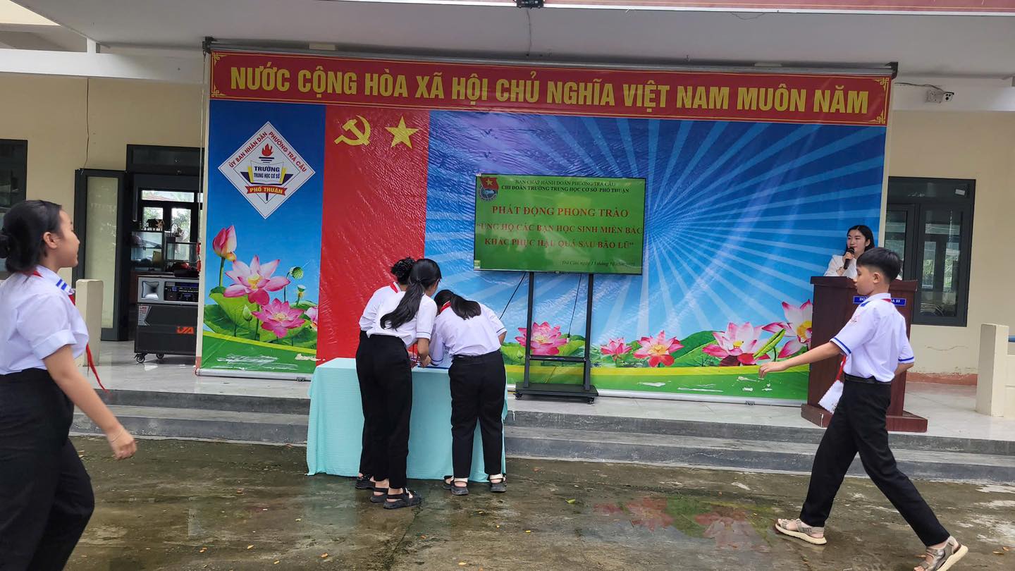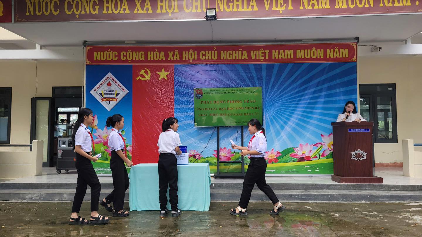 Trước những mất mát đó, với tinh thần “Lá lành đùm lá rách”, thầy cô và học sinh trường THCS Phổ Thuận đã cùng nhau phát động phong trào “Chung tay ủng hộ học sinh vùng ngập lụt”.