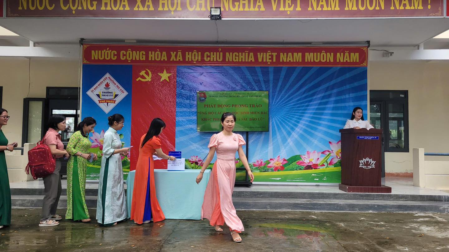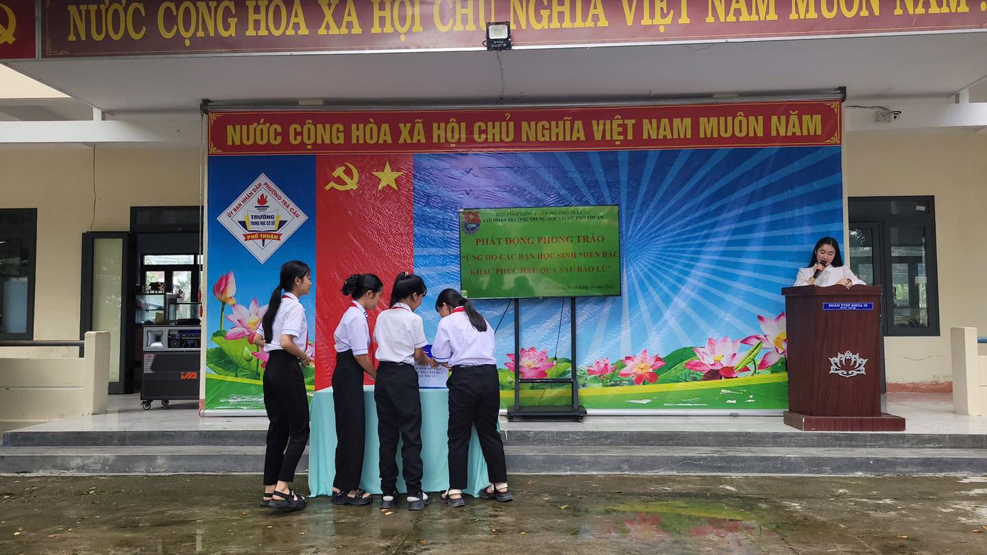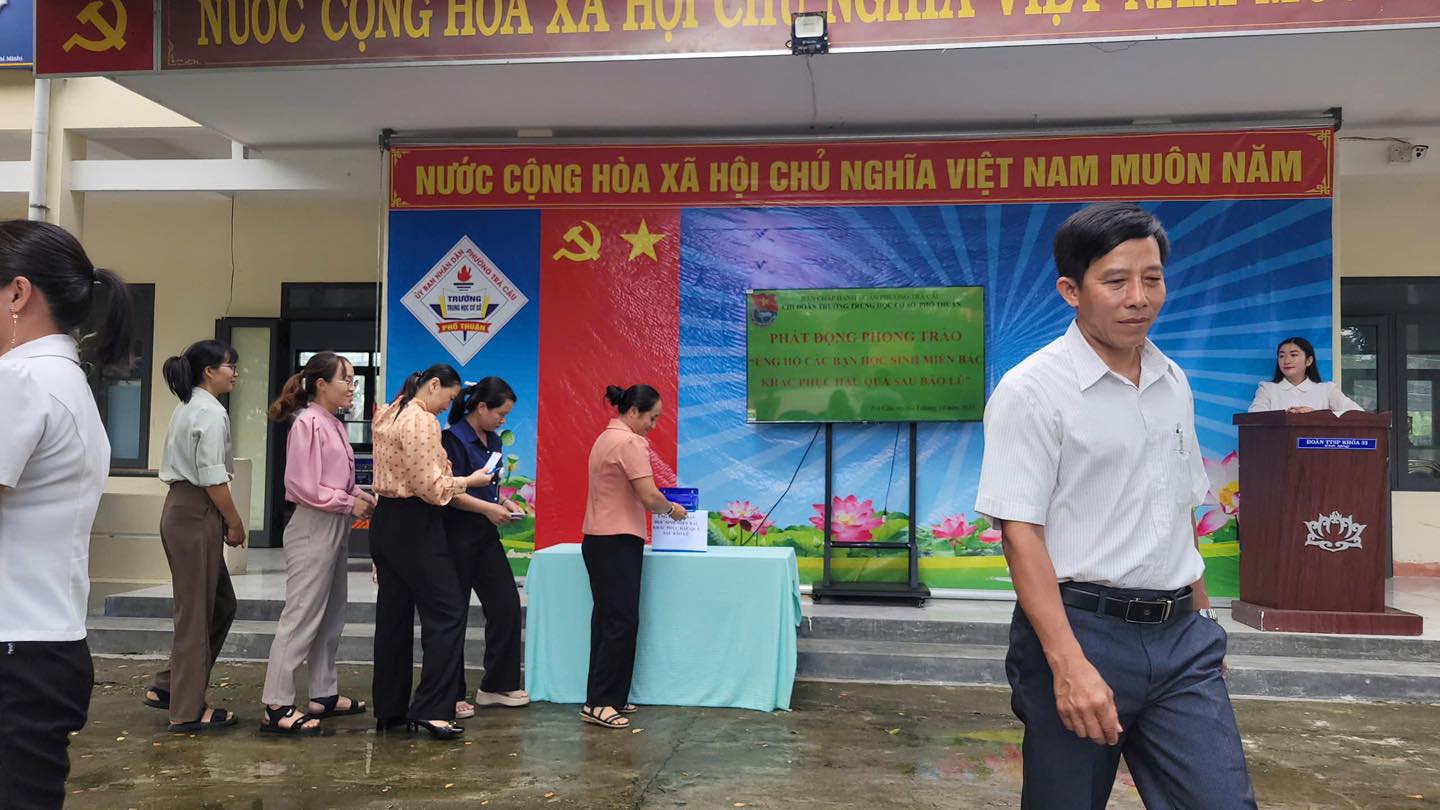 Trước những mất mát đó, với tinh thần “Lá lành đùm lá rách”, thầy cô và học sinh trường THCS Phổ Thuận đã cùng nhau phát động phong trào “Chung tay ủng hộ học sinh vùng ngập lụt”.