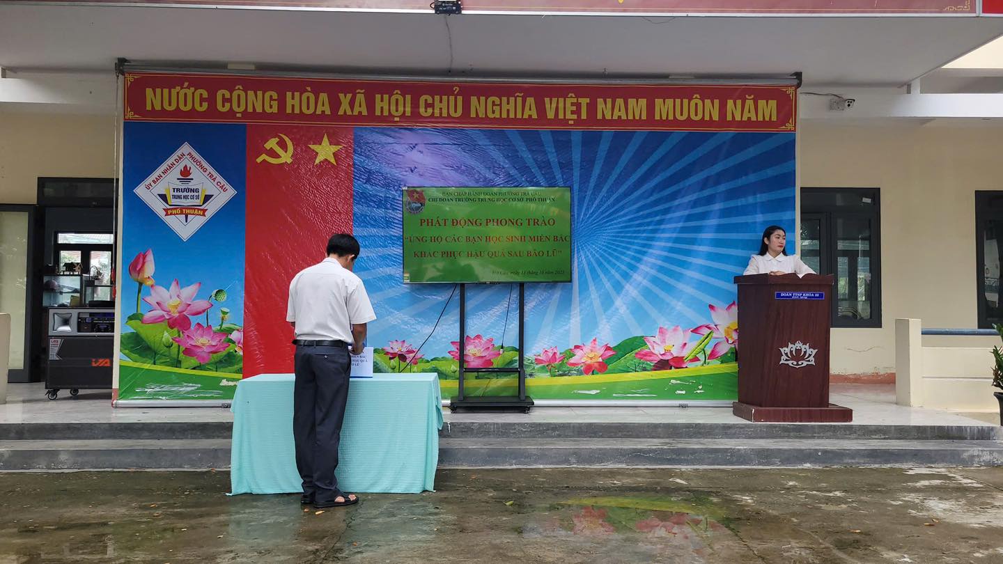 Phát động phong trào “Chung tay ủng hộ học sinh vùng ngập lụt” tại trường THCS Phổ Thuận.
