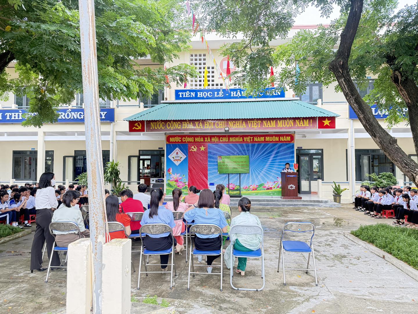 Ngay sau khi phát động, sáng nay 13/10/2025, trong buổi sinh hoạt dưới cờ đầu tuần, toàn thể cán bộ, giáo viên, nhân viên và học sinh trong nhà trường đã nhiệt tình hưởng ứng, cùng đóng góp những phần kinh phí thiết thực nhằm hỗ trợ các bạn học sinh vùng ngập lụt vượt qua khó khăn, sớm trở lại trường học.