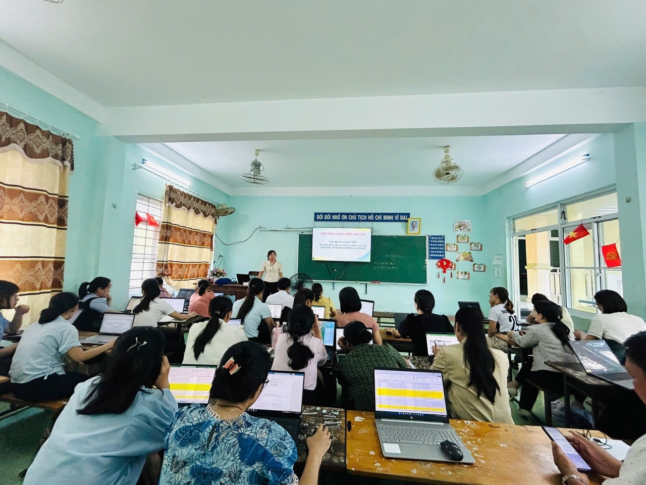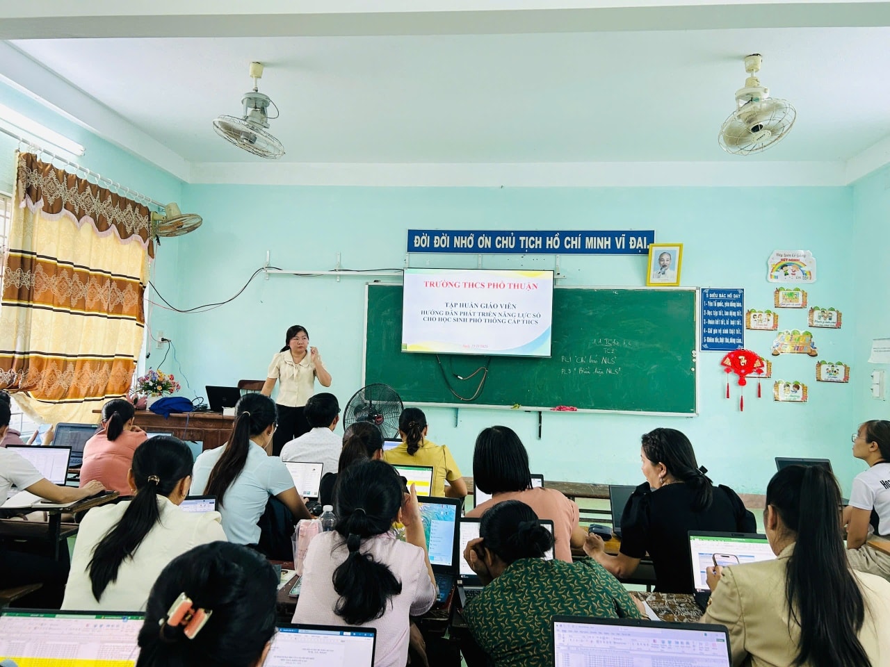 TẬP HUẤN VỀ “HƯỚNG DẪN PHÁT TRIỂN NĂNG LỰC SỐ CHO HỌC SINH TRUNG HỌC PHỔ THÔNG CẤP THCS” CHO GIÁO VIÊN TRƯỜNG THCS PHỔ THUẬN