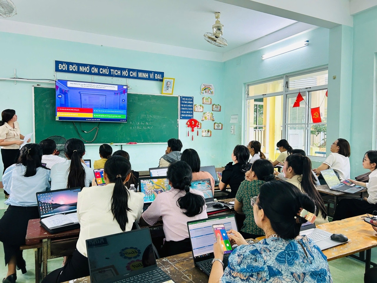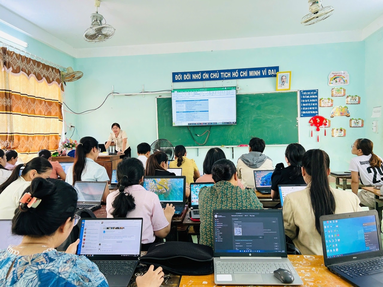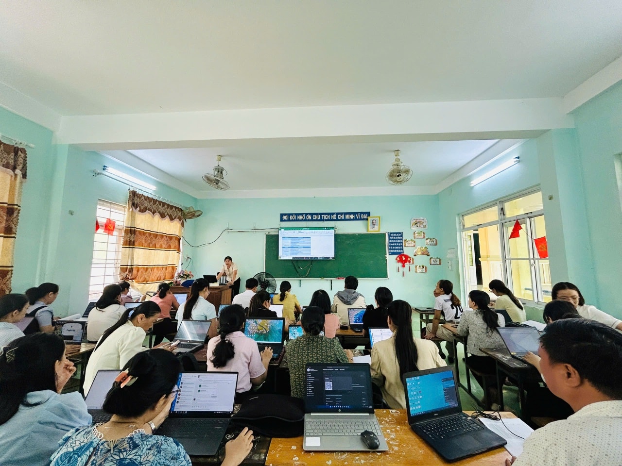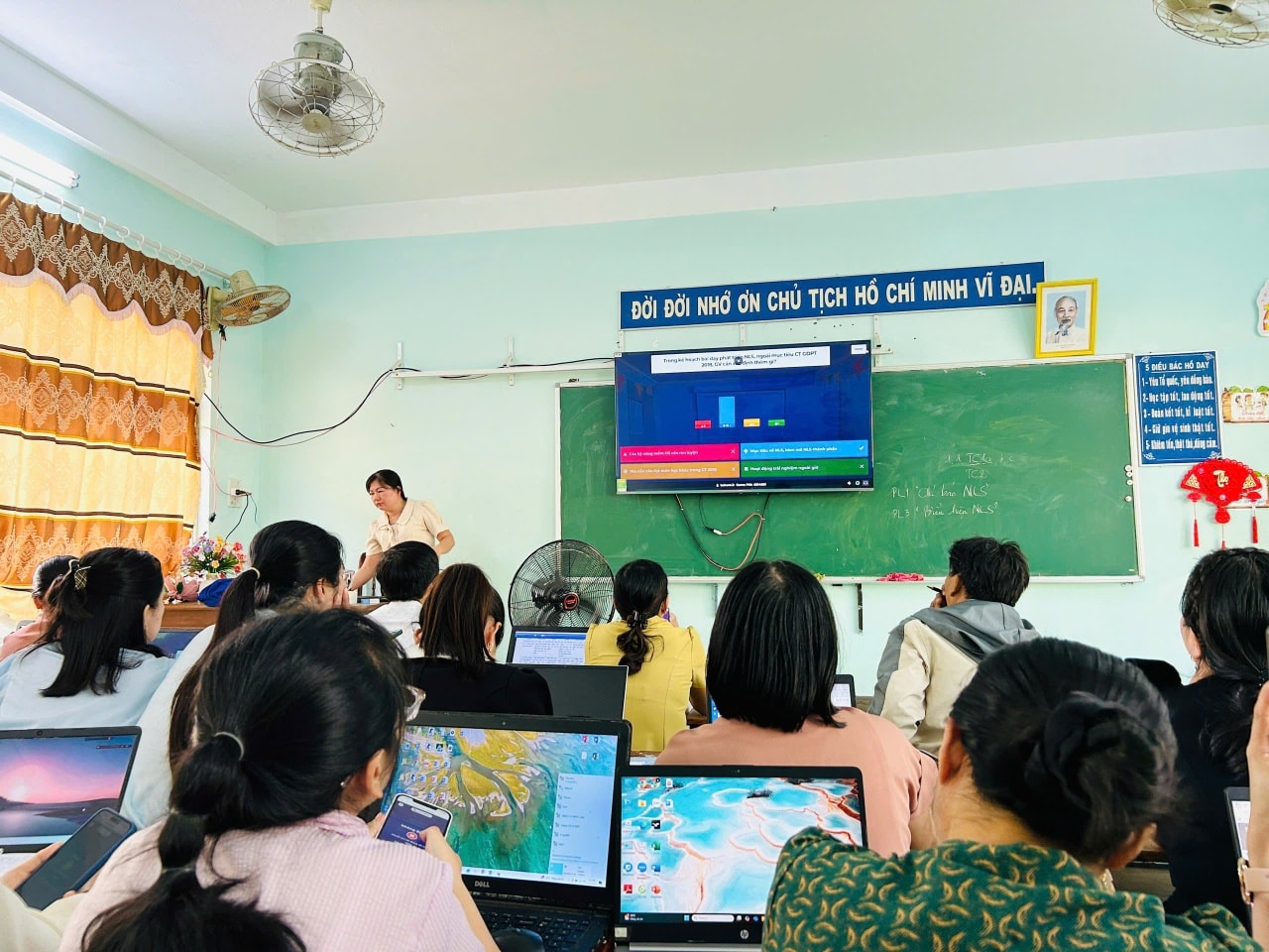 Chiều ngày 15/11/2025 cô Trần Thị Bảo Ngọc đã tập huấn cho CBQL, giáo viên về “Hướng dẫn phát triển năng lực số cho học sinh trung học phổ thông cấp THCS” nhằm giúp học sinh nâng cao năng lực số để ứng dụng trong học tập và cuộc sống, hình thành và phát triển các năng lực cần thiết để tham gia vào môi trường số trong thời đại cách mạng công nghiệp 4.0.