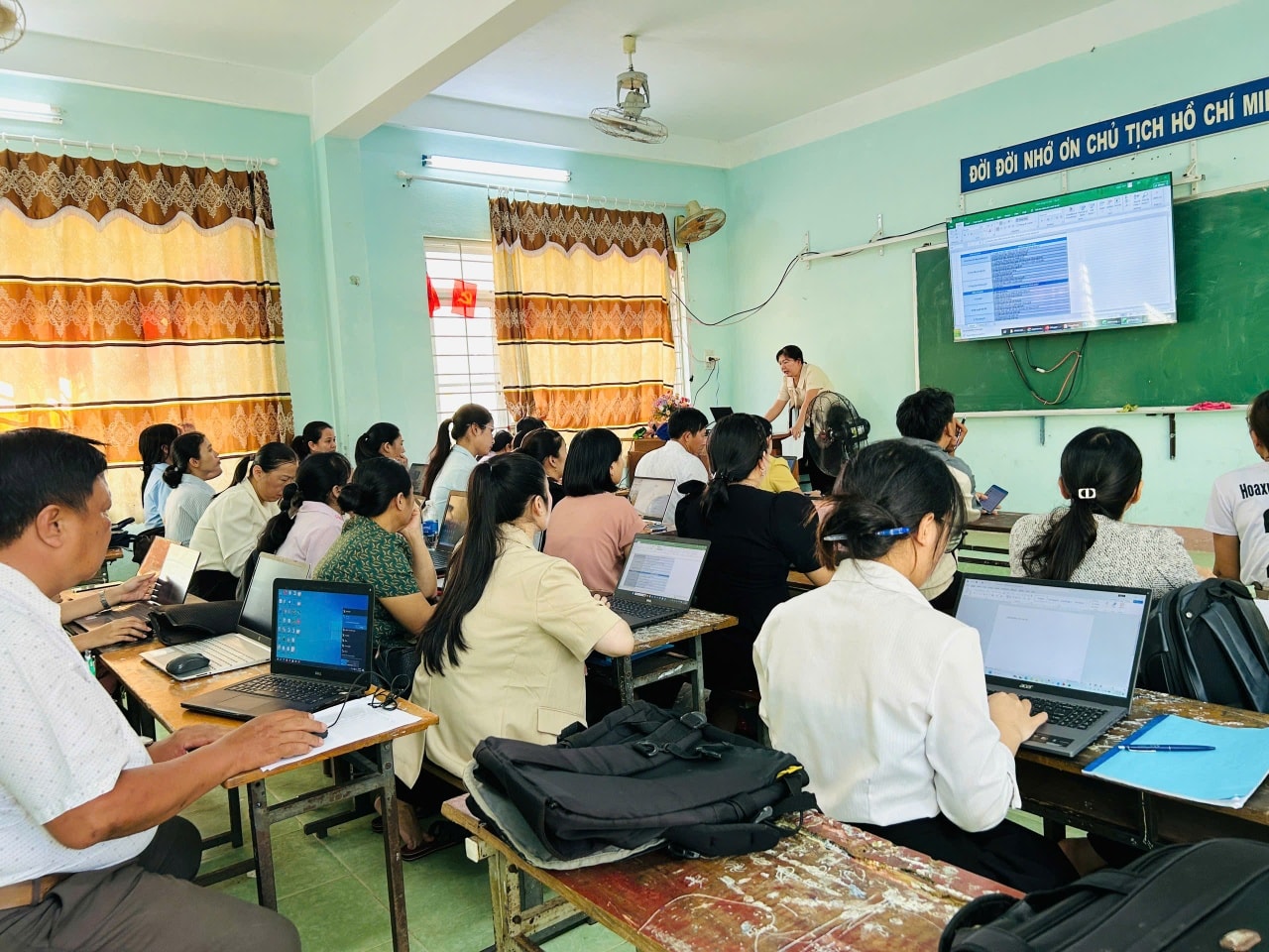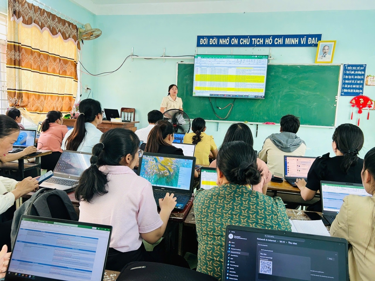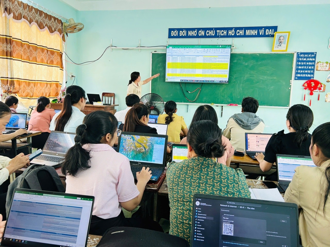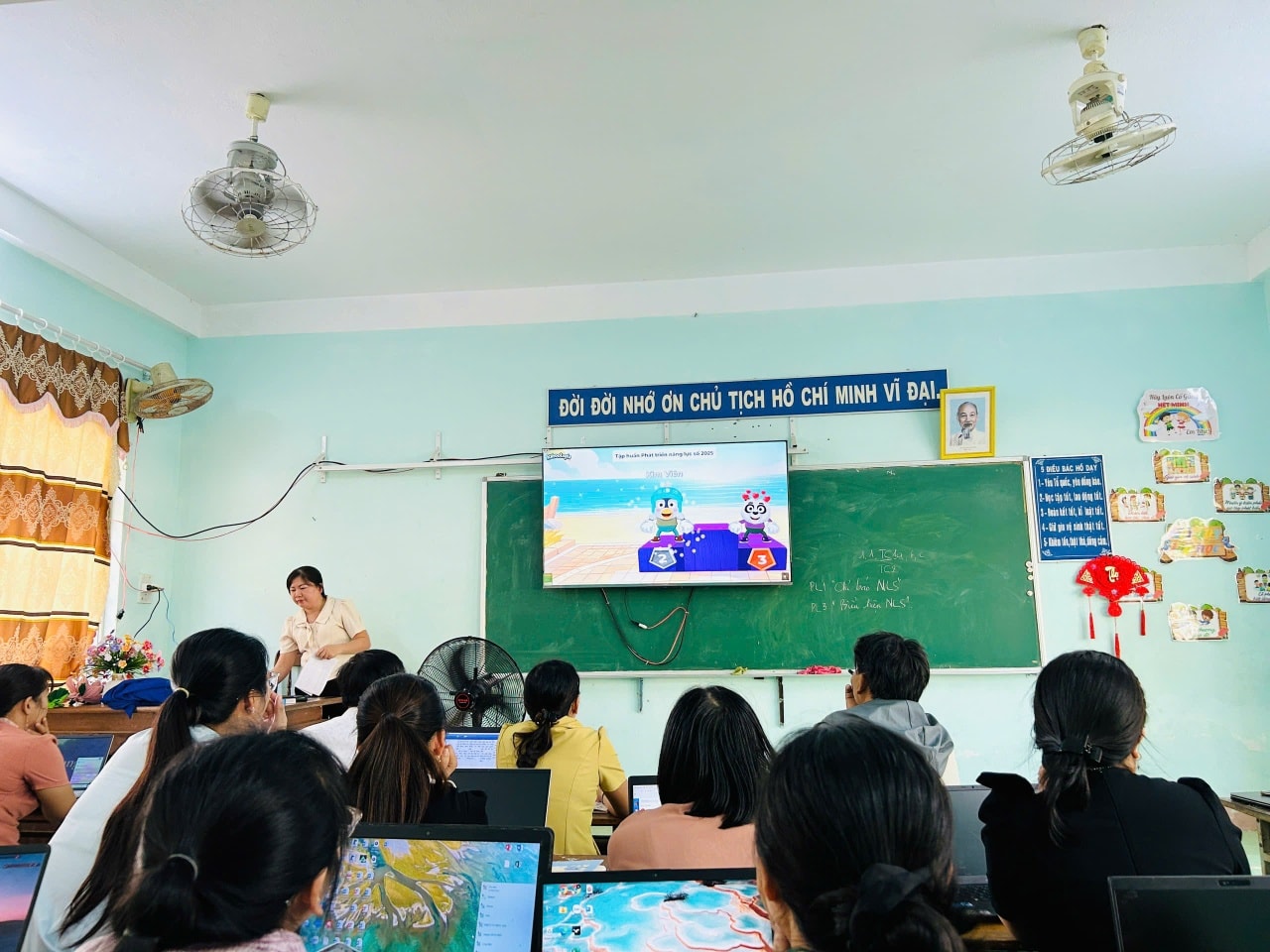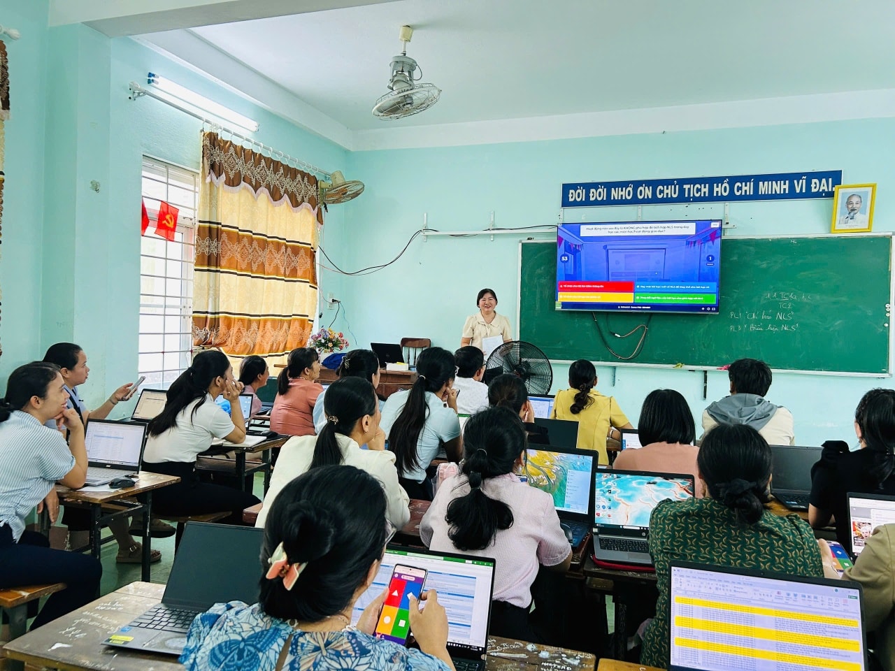 Chiều ngày 15/11/2025 cô Trần Thị Bảo Ngọc đã tập huấn cho CBQL, giáo viên về “Hướng dẫn phát triển năng lực số cho học sinh trung học phổ thông cấp THCS” nhằm giúp học sinh nâng cao năng lực số để ứng dụng trong học tập và cuộc sống, hình thành và phát triển các năng lực cần thiết để tham gia vào môi trường số trong thời đại cách mạng công nghiệp 4.0.