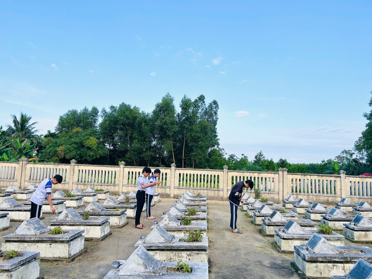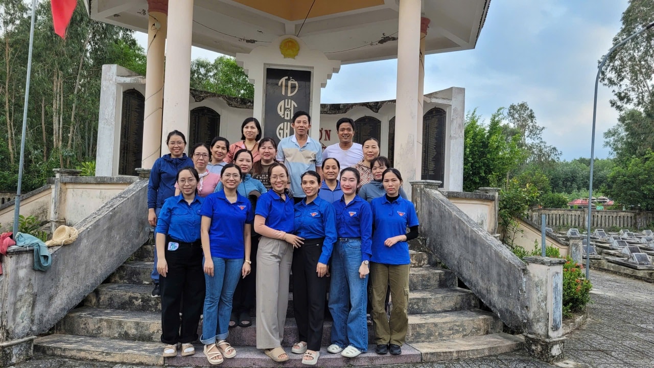 Thầy cô giáo cùng các em học sinh đã cùng nhau quét dọn, nhổ cỏ, lau chùi bia mộ, dâng hương tưởng niệm các anh hùng liệt sĩ . Hoạt động được diễn ra trong tinh thần tự giác, nhiệt huyết và đầy ý nghĩa nhân văn.